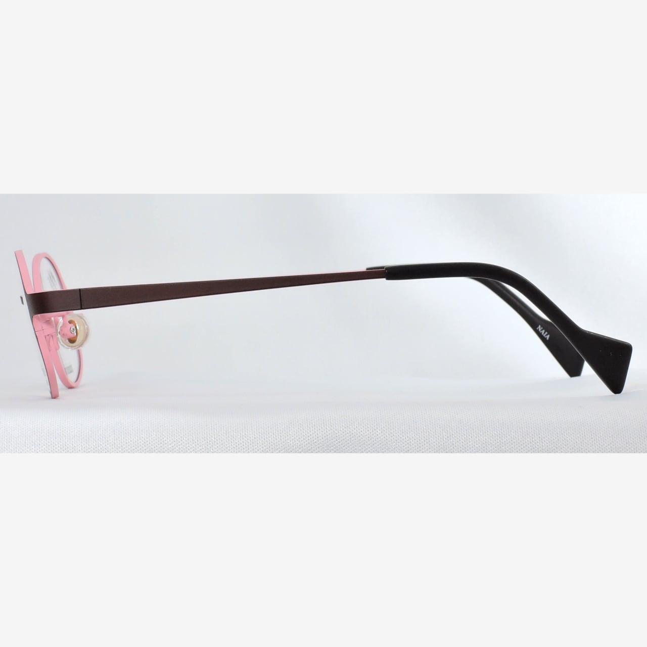リムの厚みに変化を持たせ、ライン膨らみを持たせることでかわいいメガネに仕上がっています。