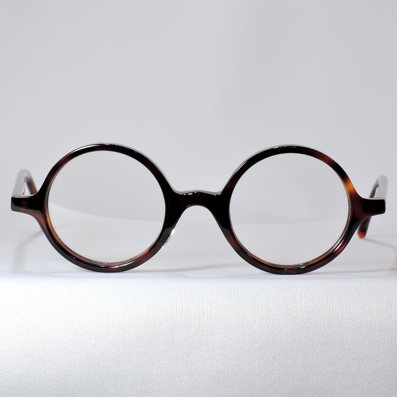 ラウンド型とも呼ばれるアセテート製の丸眼鏡です。