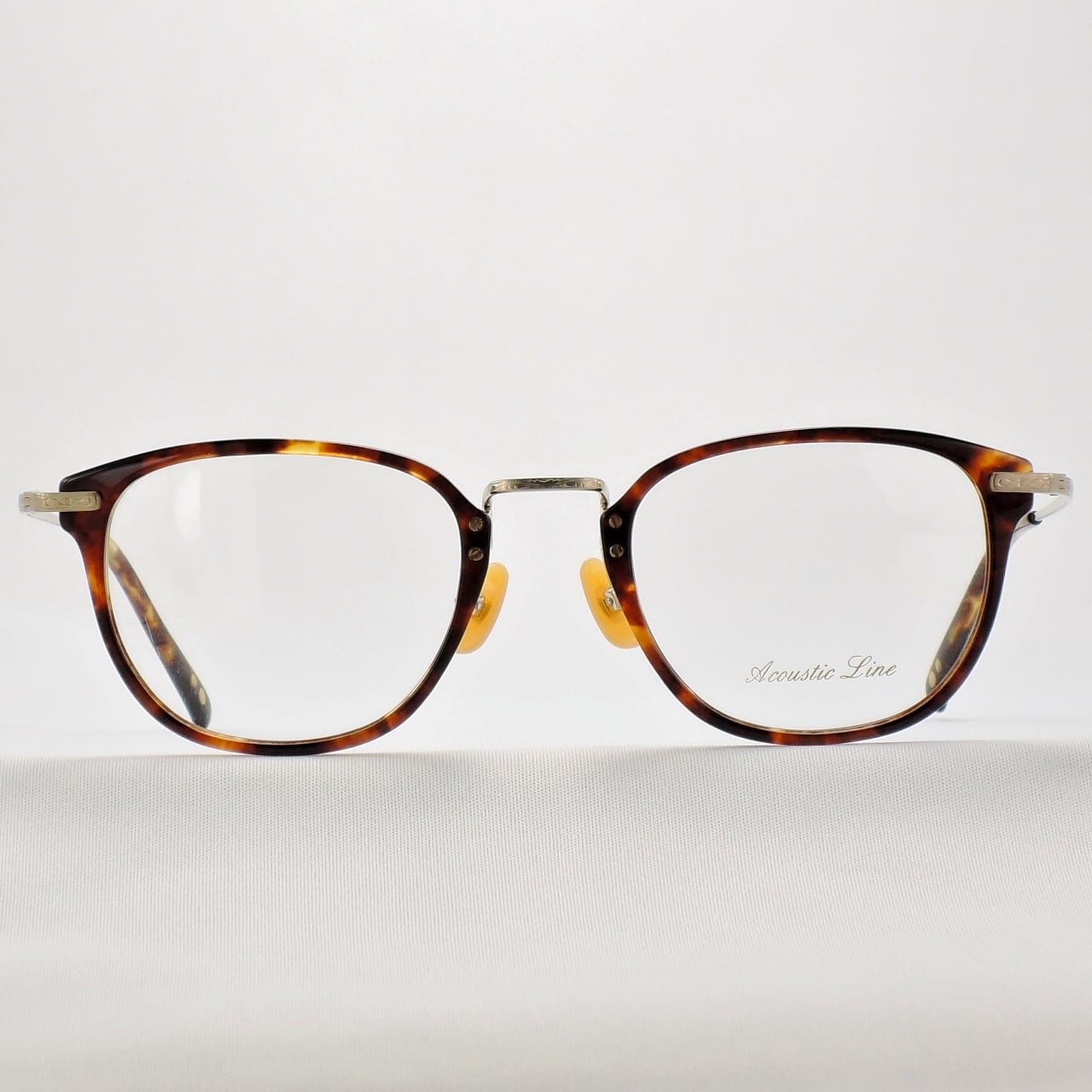 アセテート製のリムをチタンのブリッジで繋げています。