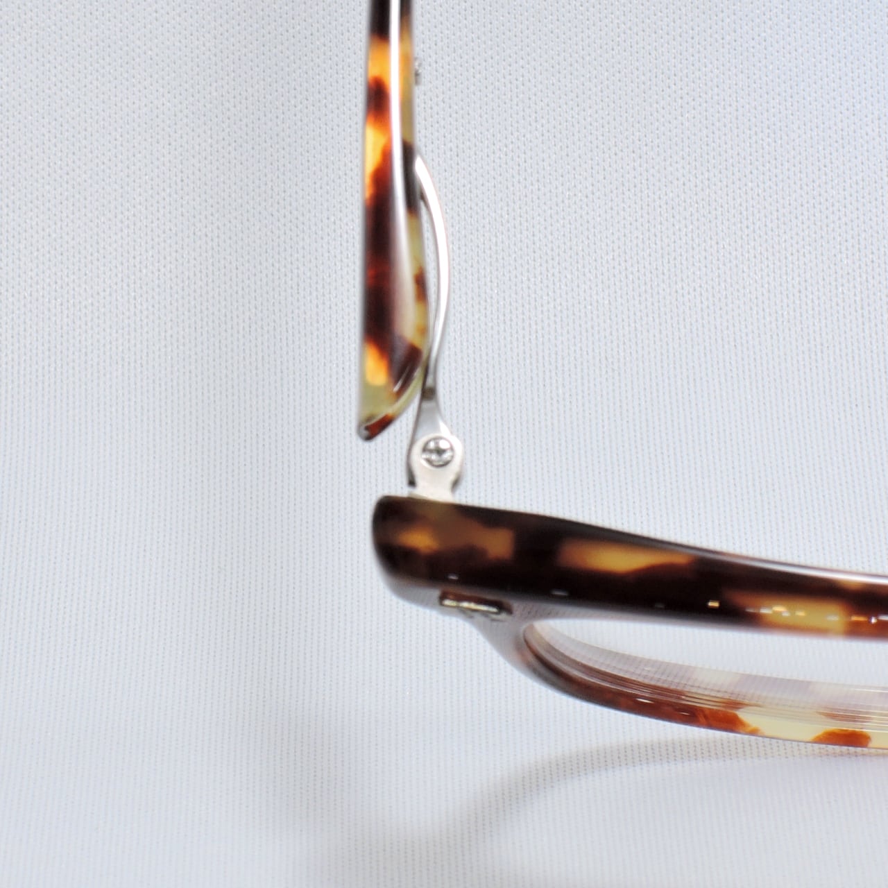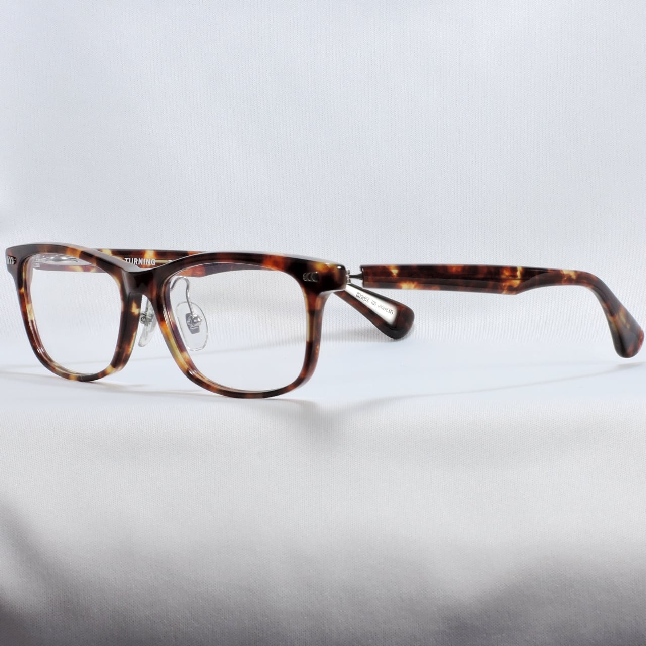 TURNINGオリジナルの「板バネ式ジョイント芯金」を使用しています。バネ部分の素材はβチタンを使用し、芯金部分の素材には純チタンを使用。バネ部分をβチタンにすることで強度と優しく包み込むホールド感が生まれ、芯金部分を純チタンにすることでフィッテイング調整がしやすく、掛けていただく方がより快適に感じられる芯金が特徴です。